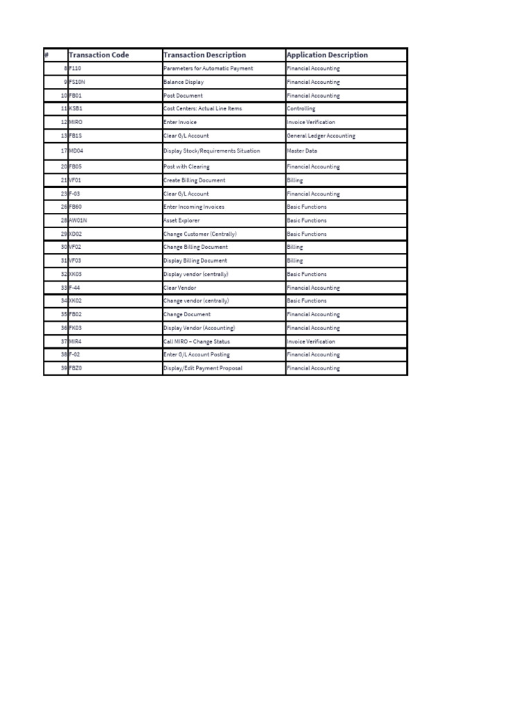 # Transaction Code Transaction Description Application Description
