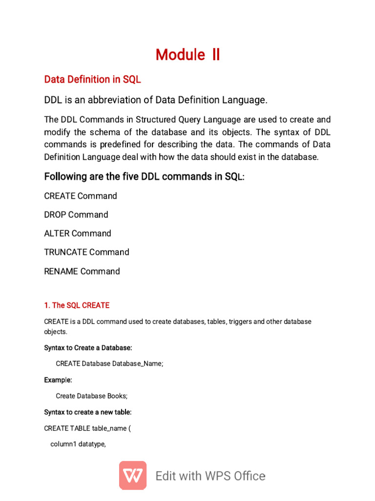 modify the schema of the database and its objects. The syntax of DDL