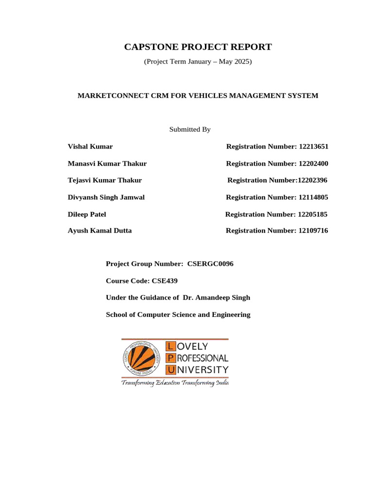 The "MarketConnect: CRM for Vehicles Management System" shows a significant
