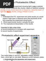 Next 2 classes: I. Understand the P.E. experiment and what results you would expect if light were a classical wave (like physicists at the time expected the experiment should give). II. What experimental results it actually did give. III. The implications/interpretation of the results.