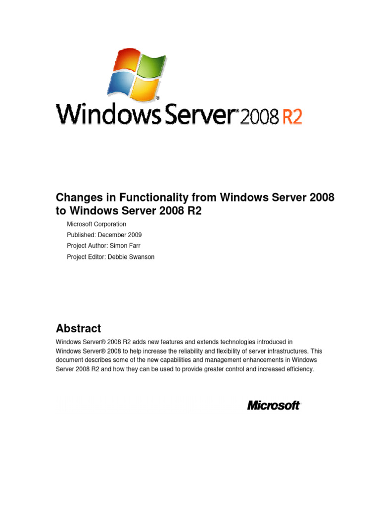 Windows Server® 2008 R2 adds new features and extends technologies introduced in