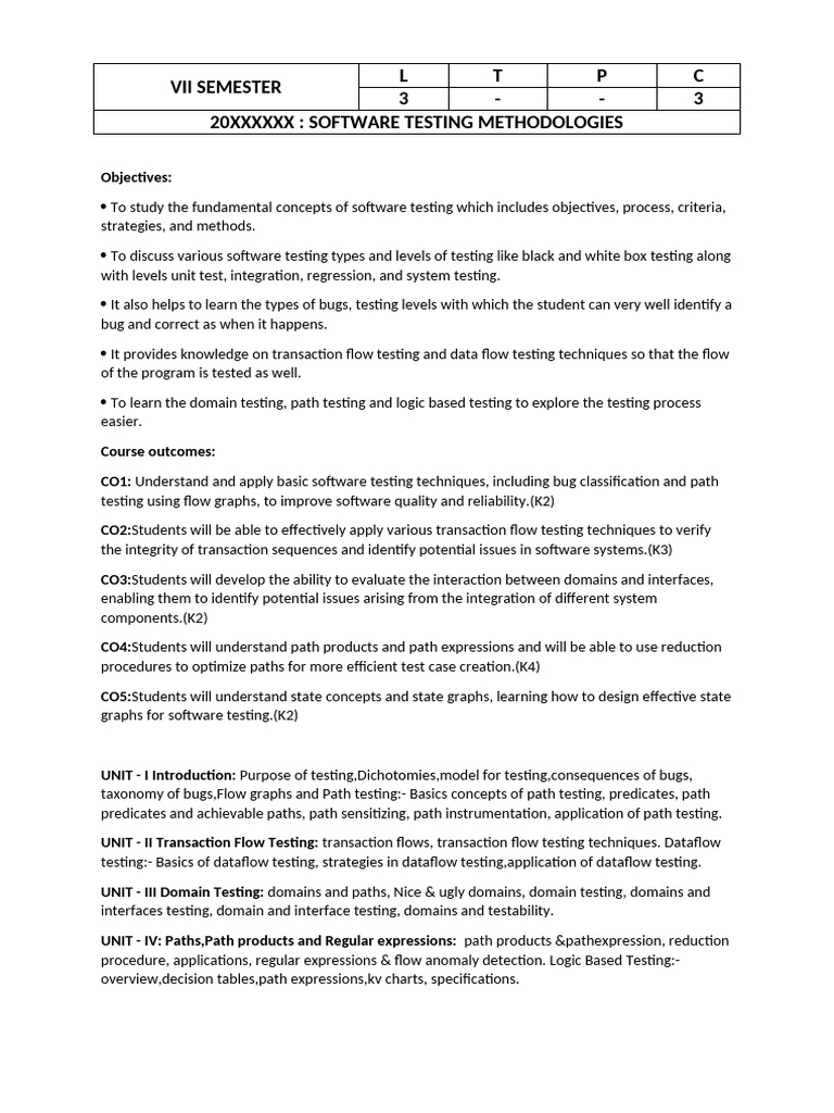 20XXXXXX : SOFTWARE TESTING METHODOLOGIES