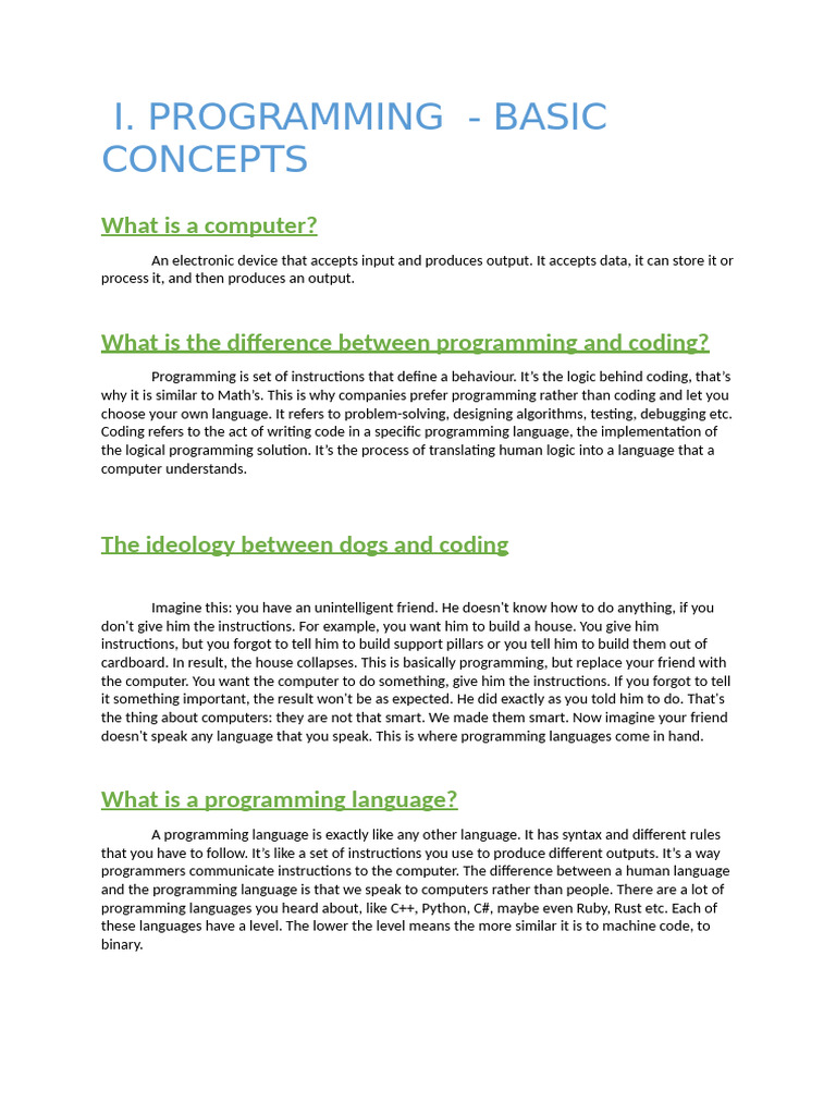 Programming is set of instructions that define a behaviour. It’s the logic behind coding, that’s