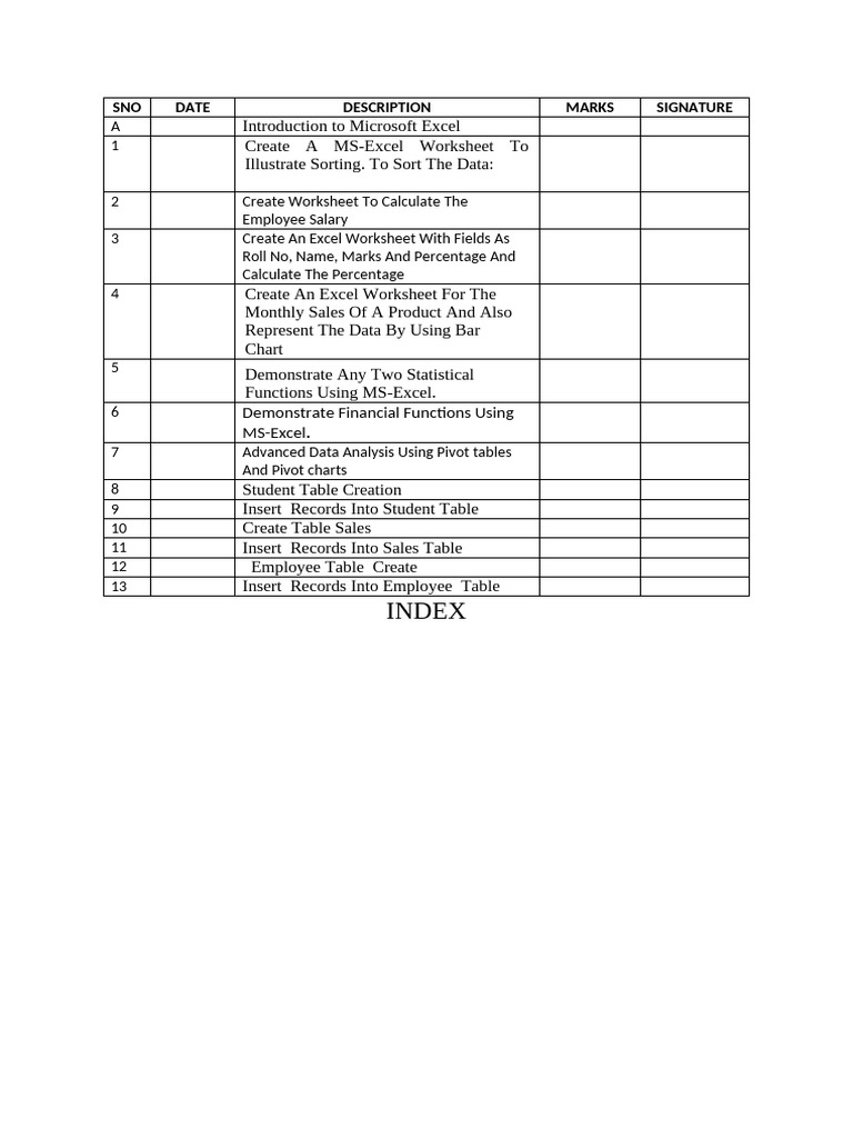 SNO DATE DESCRIPTION MARKS SIGNATURE
