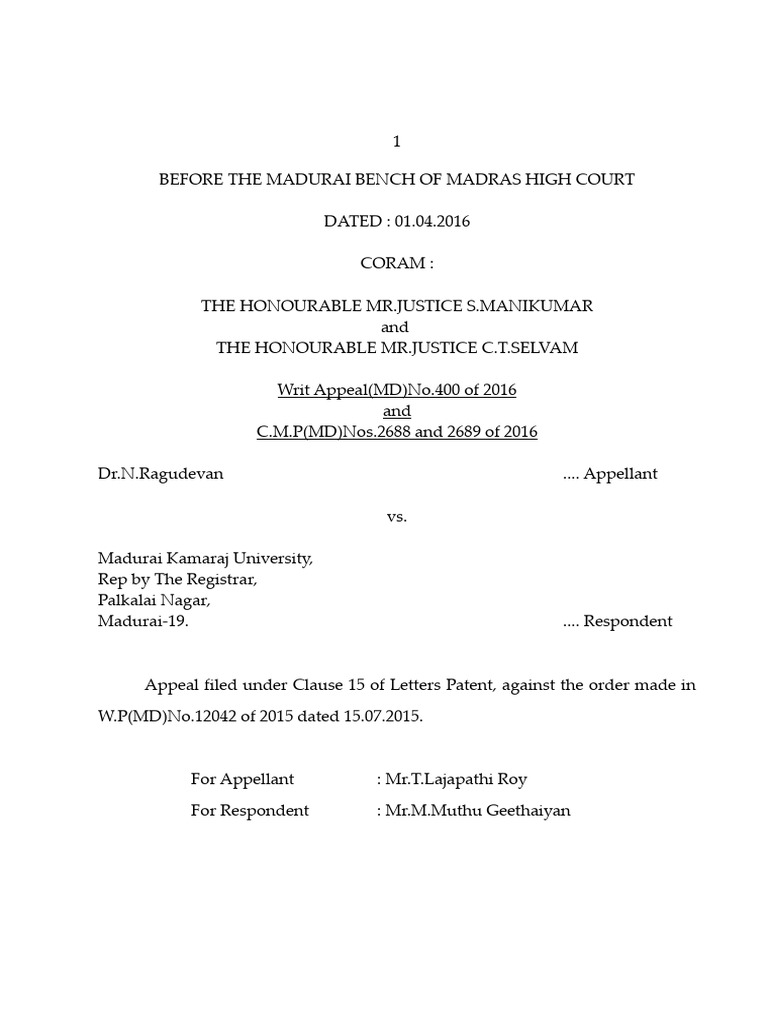 Writ Appeal(MD)No.400 of 2016