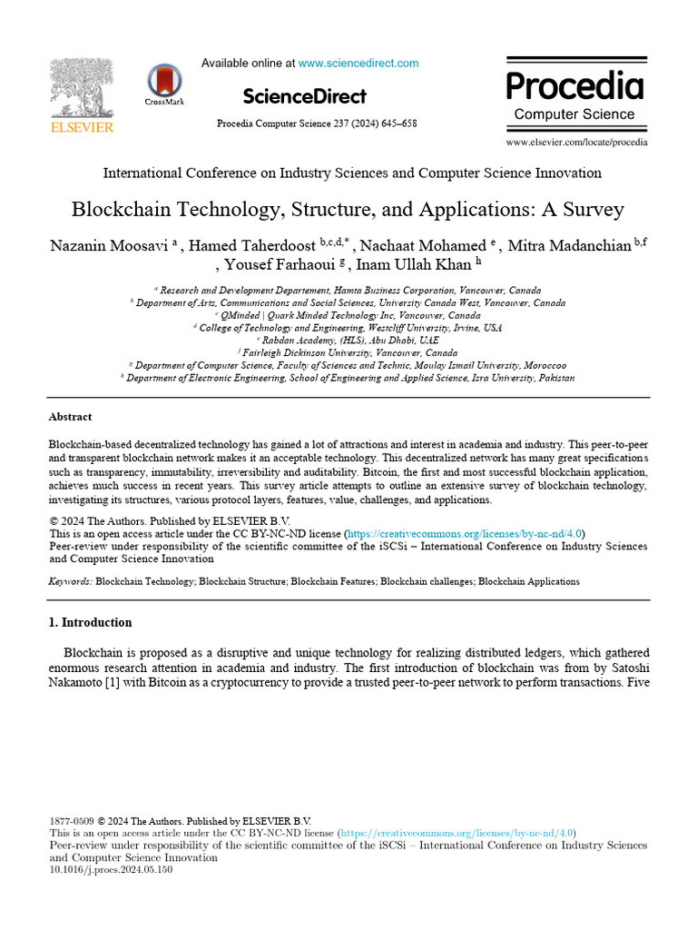 24. Bhutta, M.N.M., et al., A survey on blockchain technology: Evolution, architecture and security. IEEE Access, 2021. 9: p. 61048-61073.