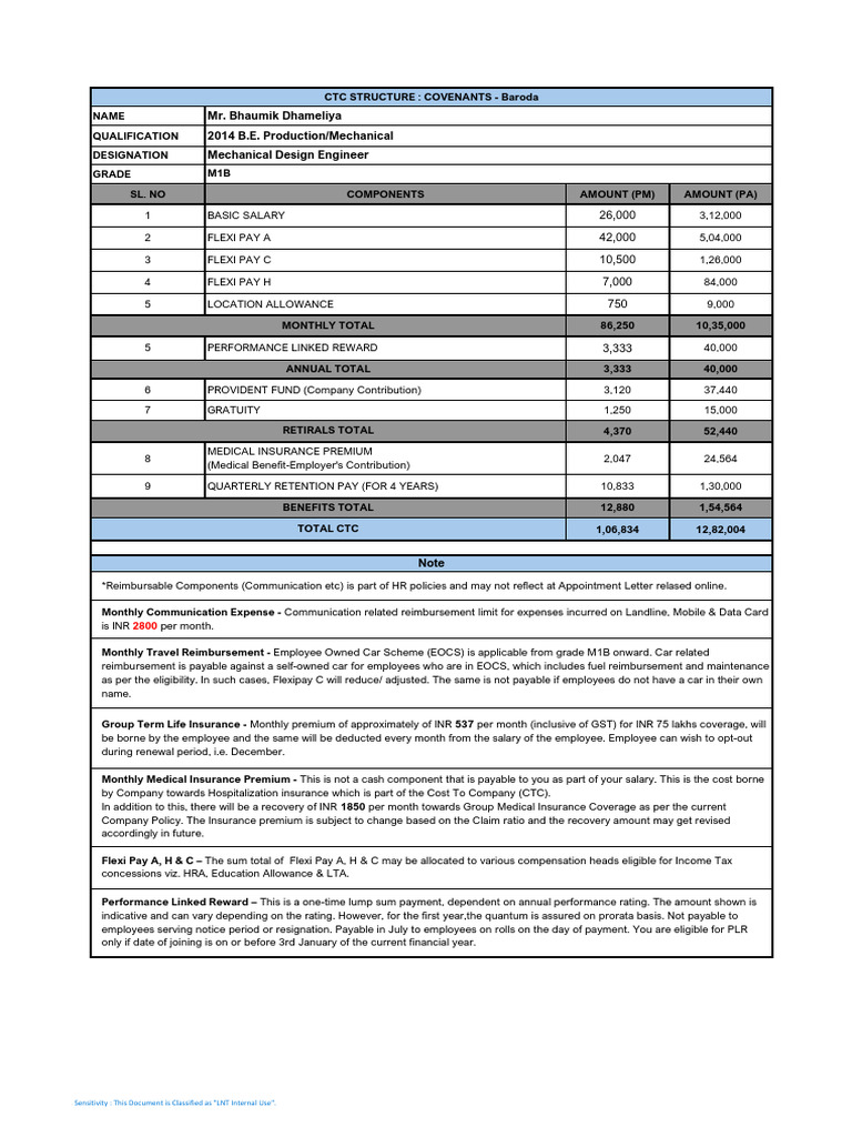 *Reimbursable Components (Communication etc) is part of HR policies and may not reflect at Appointment Letter relased online.