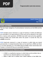 Some EPROM chips are factory-erased before they are packaged, and include no window; these are effectively PROM. 3. Electrically erasable programmable read-only memory (EEPROM) is based on a similar semiconductor structure to EPROM, but allows its entire contents (or selected banks) to be electrically erased, then rewritten electrically, so that they need not be removed from the computer (or camera, MP3 player, etc.). Writing or flashing an EEPROM is much slower (milliseconds per bit) than reading from a ROM or writing to a RAM (nanoseconds in both cases). 3.1 Electrically alterable read-only memory (EAROM) is a type of EEPROM that can be modified one bit at a time. Writing is a very slow process and again needs higher voltage (usually around 12 V) than is used for read access. EAROMs are intended for applications that require infrequent and only partial rewriting. EAROM may be used as non-volatile storage for critical system setup information; in many applications, EAROM has been supplanted by CMOS RAM supplied by mains power and backed-up with a lithium battery.