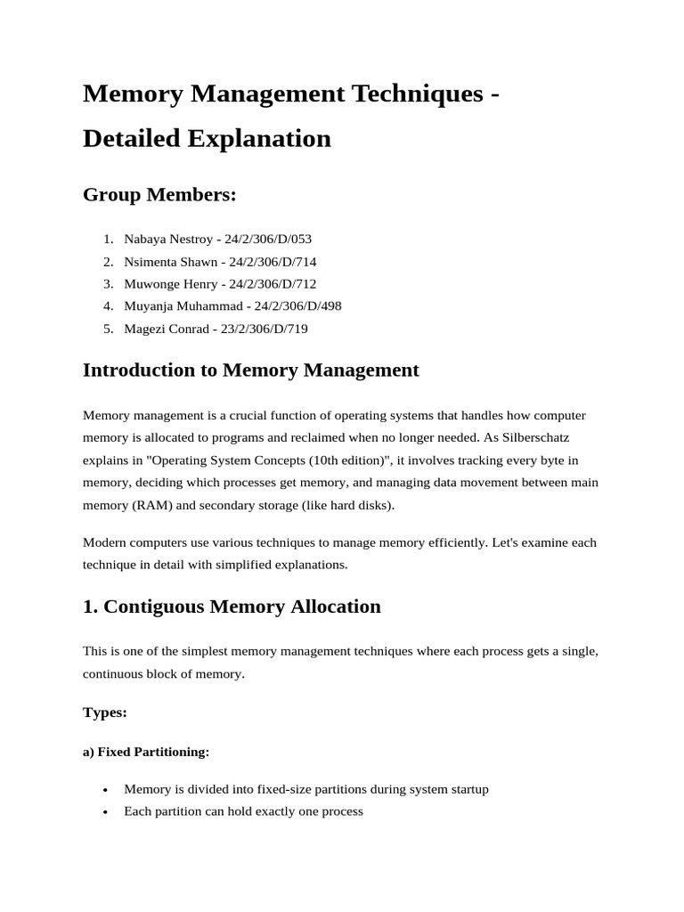 Modern computers use various techniques to manage memory efficiently. Let's examine each