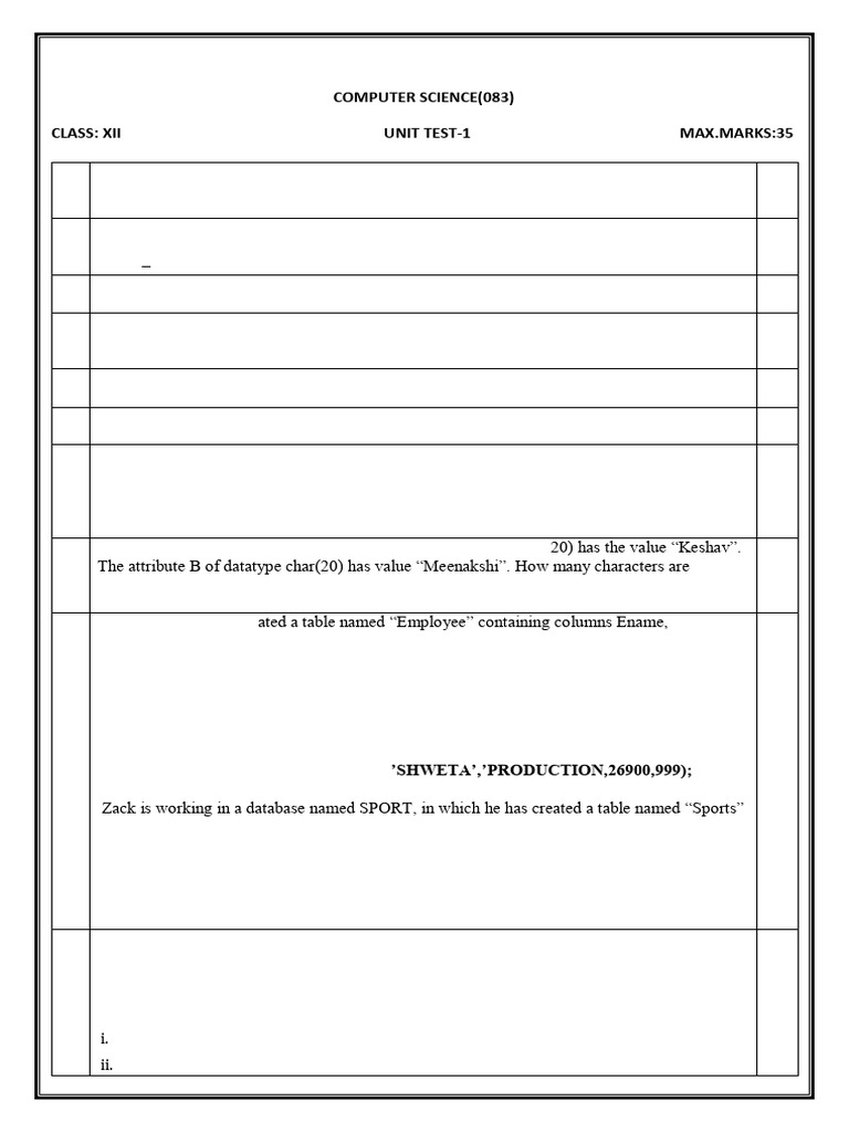 CLASS: XII UNIT TEST-1 MAX.MARKS:35