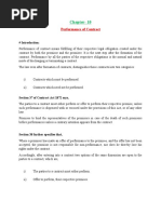 compensation only if she herself demolished or delivered possession of the house by 10 April 1974 and she had not given effect to that intention within the prescribed time or even thereafter. The promisor, as we have seen, does not always have to perform his promise personally. Unless the contract specifically requires personal performance, the promise may be performed by a competent third party employed by the promisor or his representative. If performance of the promise is tendered by a third party and accepted by the promise, Section 42 provides that the promise cannot subsequently enforce it against the promisor. In Chin Swee Onn v Puchong Realty Sdn Bhd10, the respondents had obtained judgement by default of appearance against the appellant. The respondents also agreed to forbear from levying execution on the judgement in consideration of the appellant instructing a third party to pay the judgement debt by instalments of $2, 000 a month. After having received $10, 000 from the third party, the respondents took out a bankruptcy notice against the appellant. The appellant applied to set aside the bankruptcy notice but this application was dismissed in the High Court. The appellant appealed. The Supreme Court held that the acceptance of the payments from the third party by the respondents activated Section 42 of the Contracts Act 1950. That section reads, When a promisee accepts performance of the promise form a third person, he cannot afterwards enforce it against the promisor. In delivering the judgment of the Supreme Court, Ajaib Singh SCJ said: We are of the view that the learned judge failed to give due regard to Section 42 of the Contracts Act 1950. In the present appeal before us, counsel for the appellant relied strongly on Section 42 of the Contracts Act 1950 and we agree with him the respondents having accepted the performance of the appellants obligation to pay his debt to them by a third party, were precluded from enforcing the judgement debt against the appellant. Consequently, the respondents were not entitled to enforce their claim against the appellant. This meant that they could not execute their judgement. The appeal was allowed. At has to be noted that a contracting party can invoke Section 42 only if the third party has actually performed the promise on the behalf of the promisor, non-performance or less than complete performance of obligations.