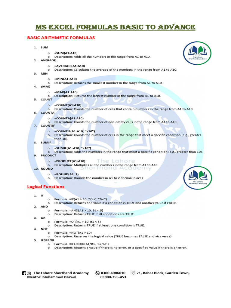 MS EXCEL FORMULAS BASIC TO ADVANCE