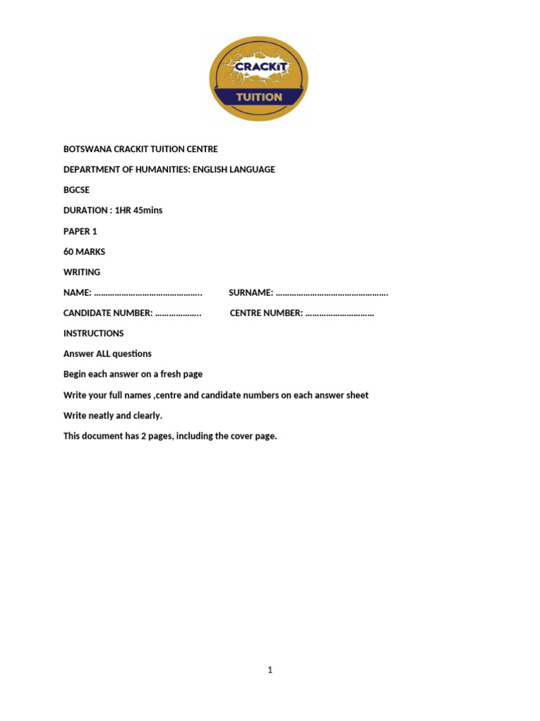 CANDIDATE NUMBER: ……………….. CENTRE NUMBER: …………………………