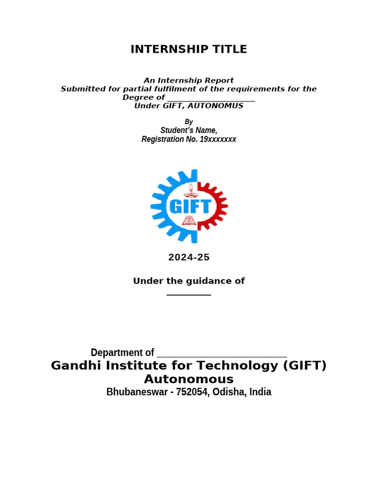 Department of ________________) and Prof. _______________ (Internship In-