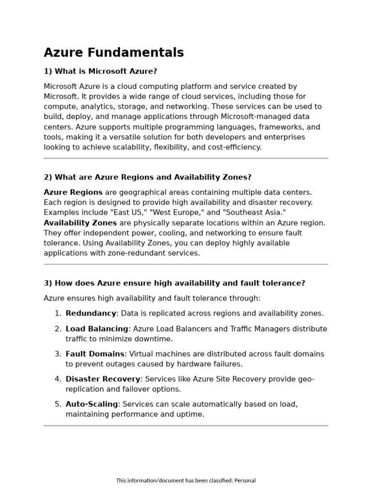 1. Virtual Machines: 99.9% uptime for single VMs, 99.99% for VMs in