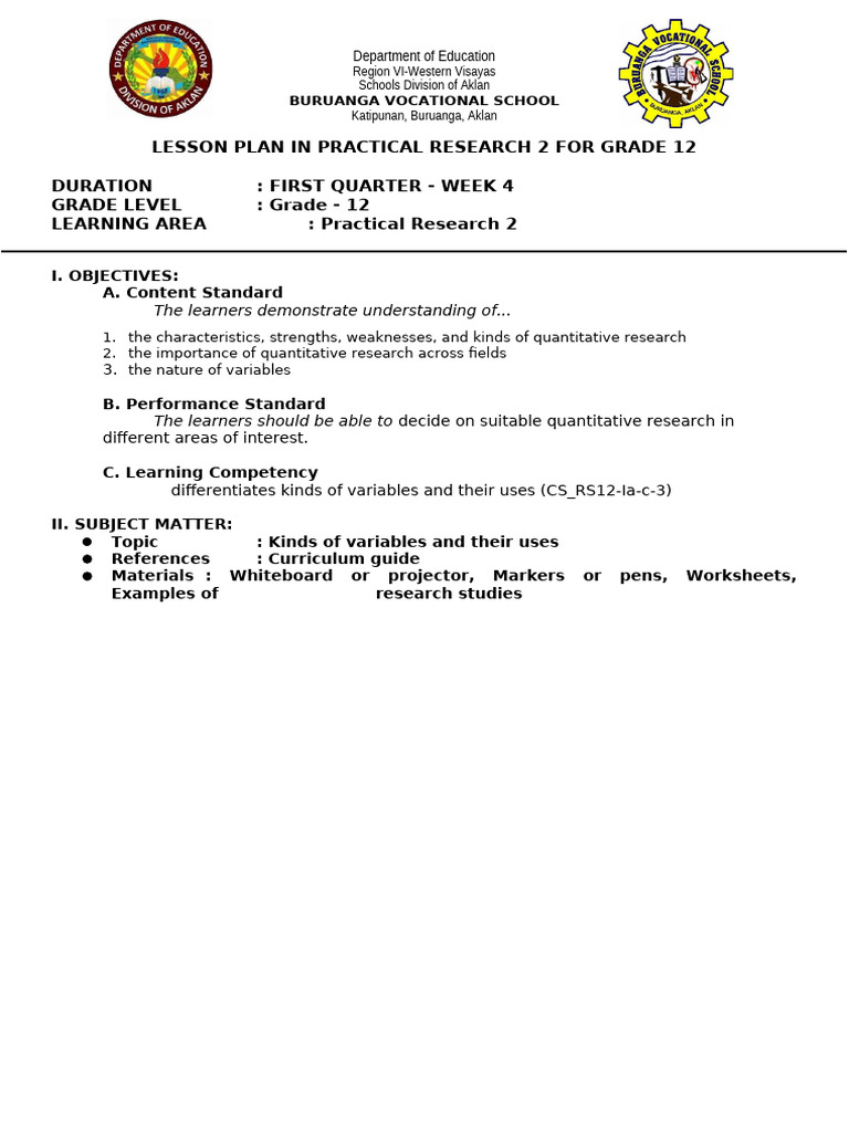 LESSON PLAN IN PRACTICAL RESEARCH 2 FOR GRADE 12