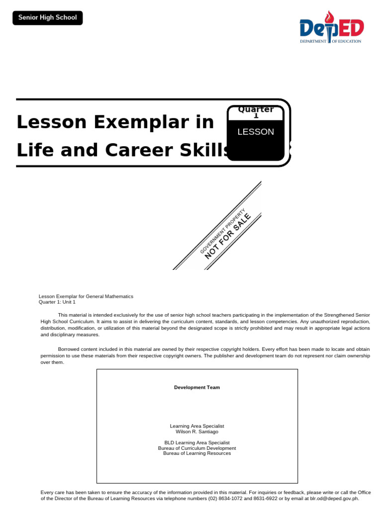 Learning Area Life and Career Skills Grade Level 11