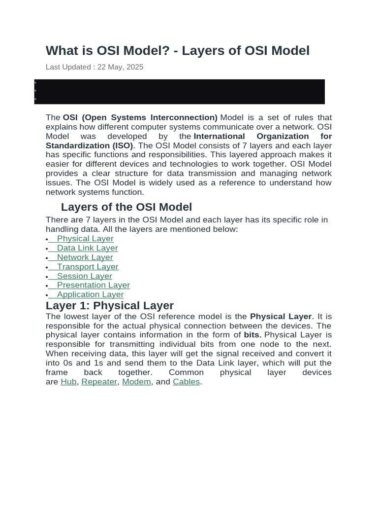 - Layers of OSI Model
