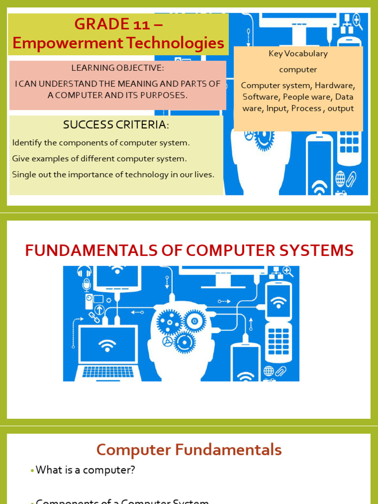 I CAN UNDERSTAND THE MEANING AND PARTS OF Computer system, Hardware,