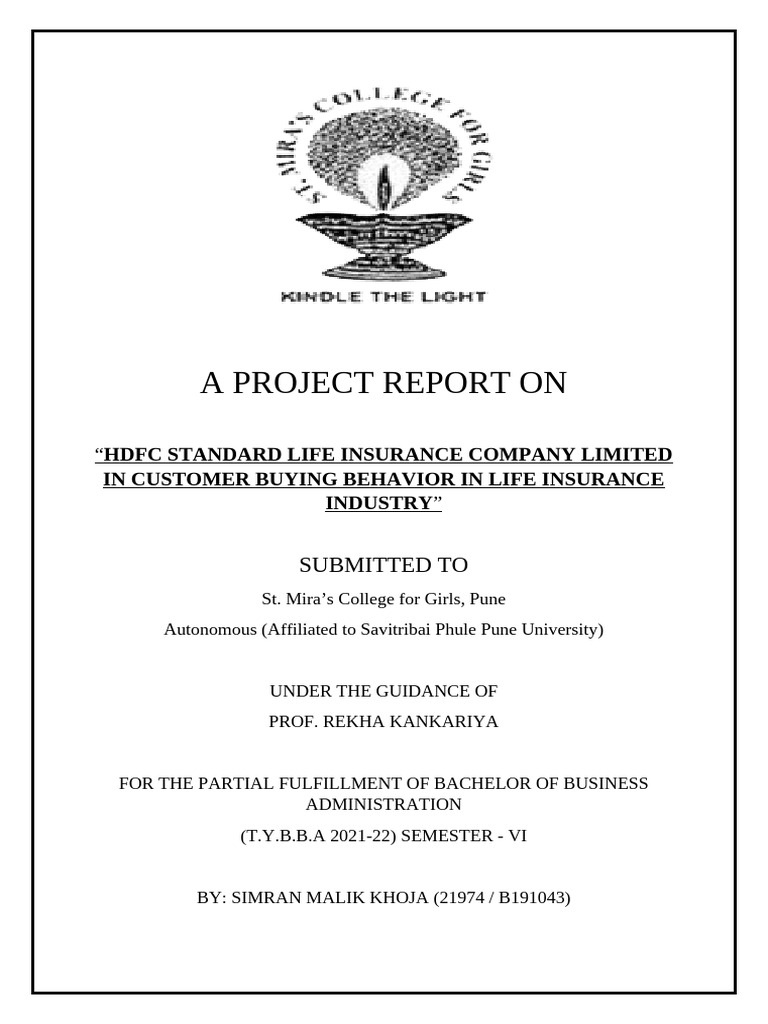 Behaviour in Life Insurance Industry” in specialization – Finance.