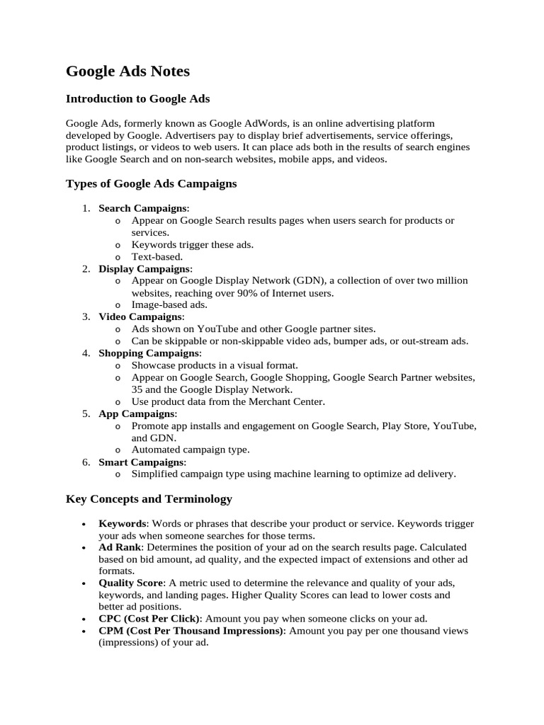 Google Ads Notes