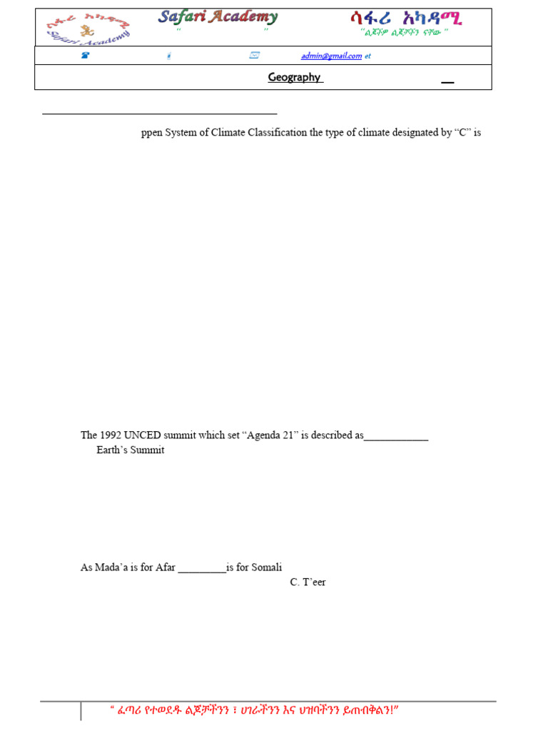 2024/25 Academic Year 1st Semester Geography Worksheet for Grade 12