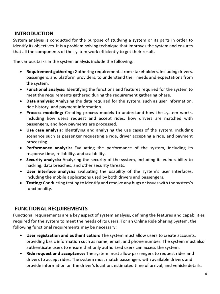 required for the system to meet the needs of its users. For an Online Ride Sharing System, the