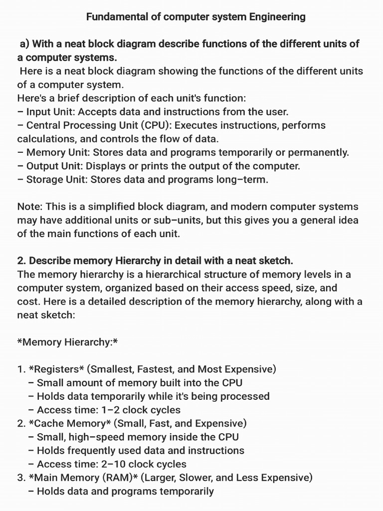 2. Describe memory Hierarchy in detail with a neat sketch.