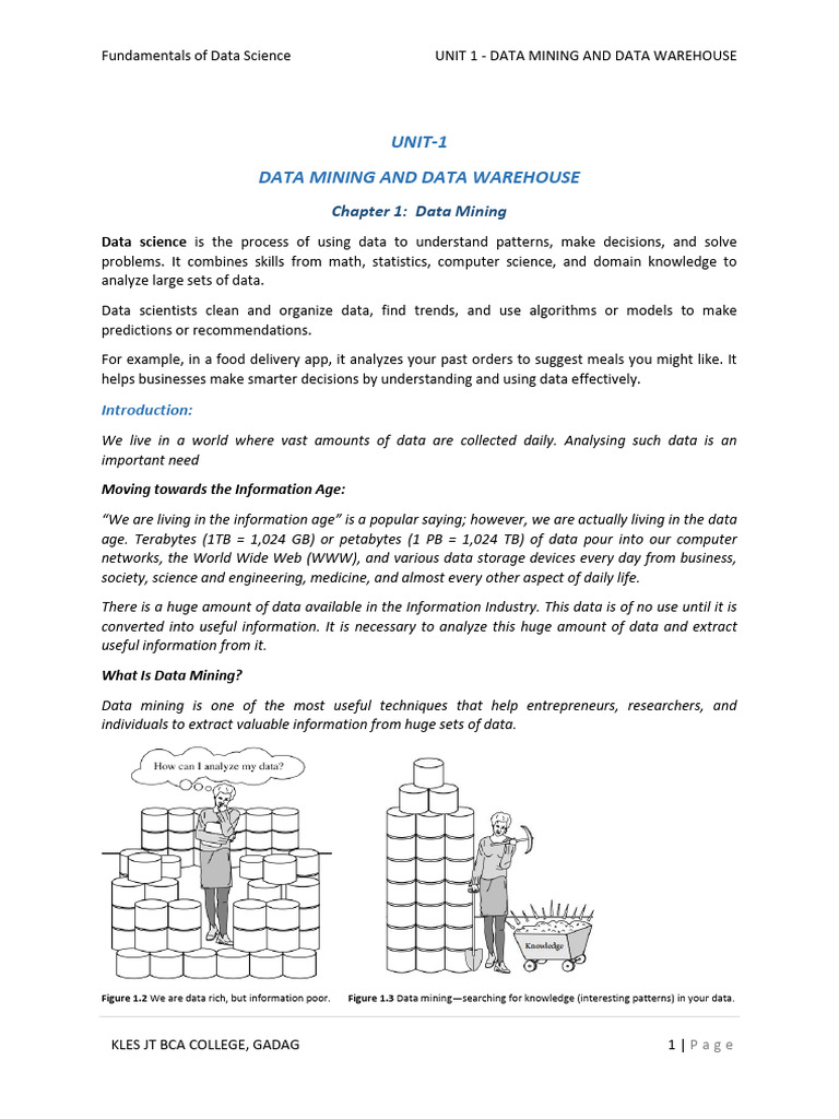 Data mining is the process of extracting or “mining” knowledge (Information) from large amounts of