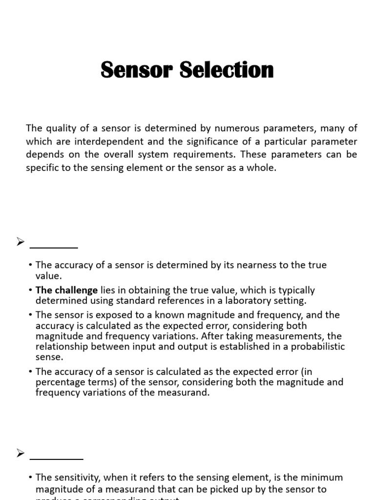 • Sensitivity, when it refers to the entire sensor, is not necessarily the