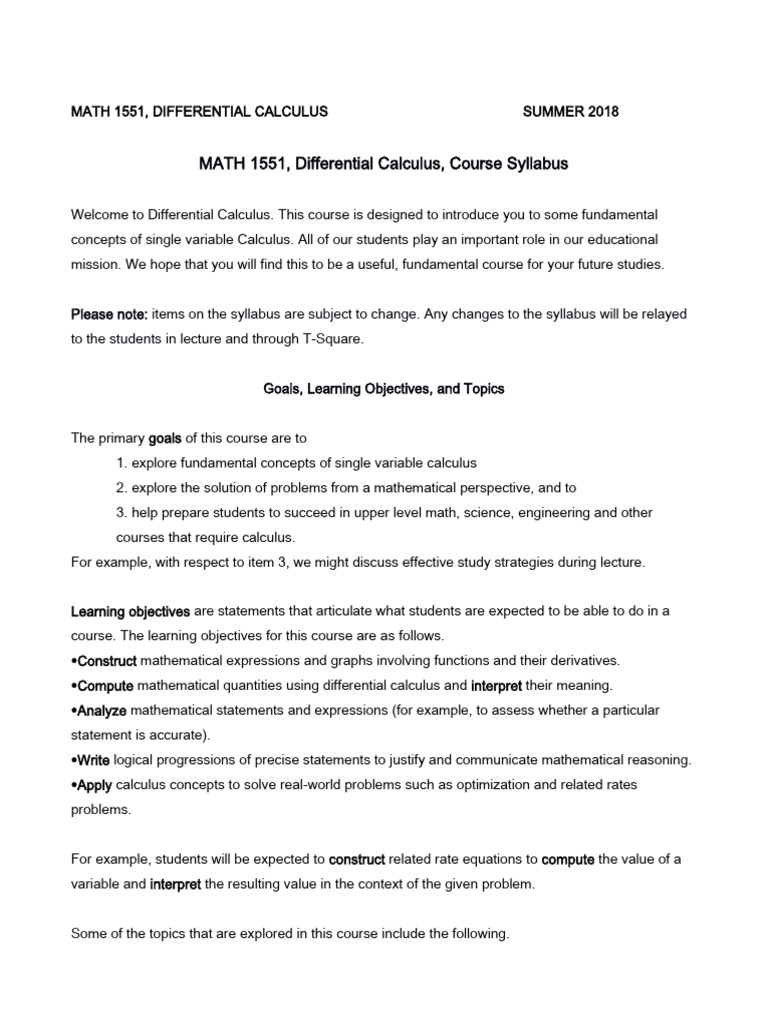MATH 1551, DIFFERENTIAL CALCULUS SUMMER 2018