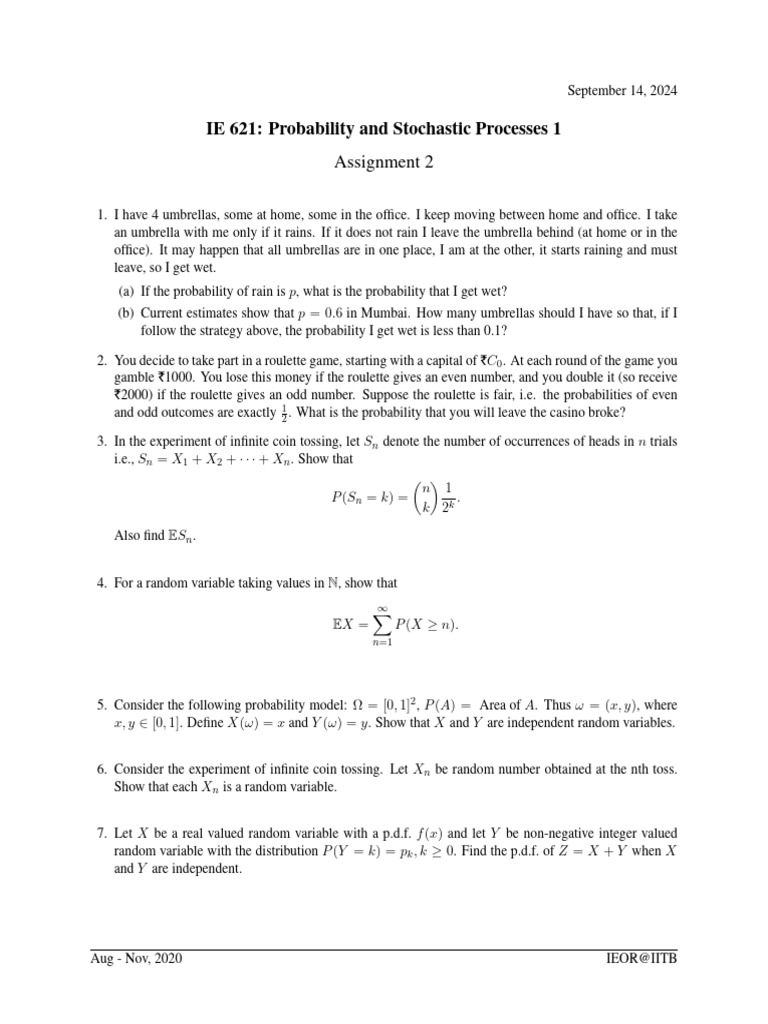 Aug - Nov, 2020 IEOR@IIT Bombay