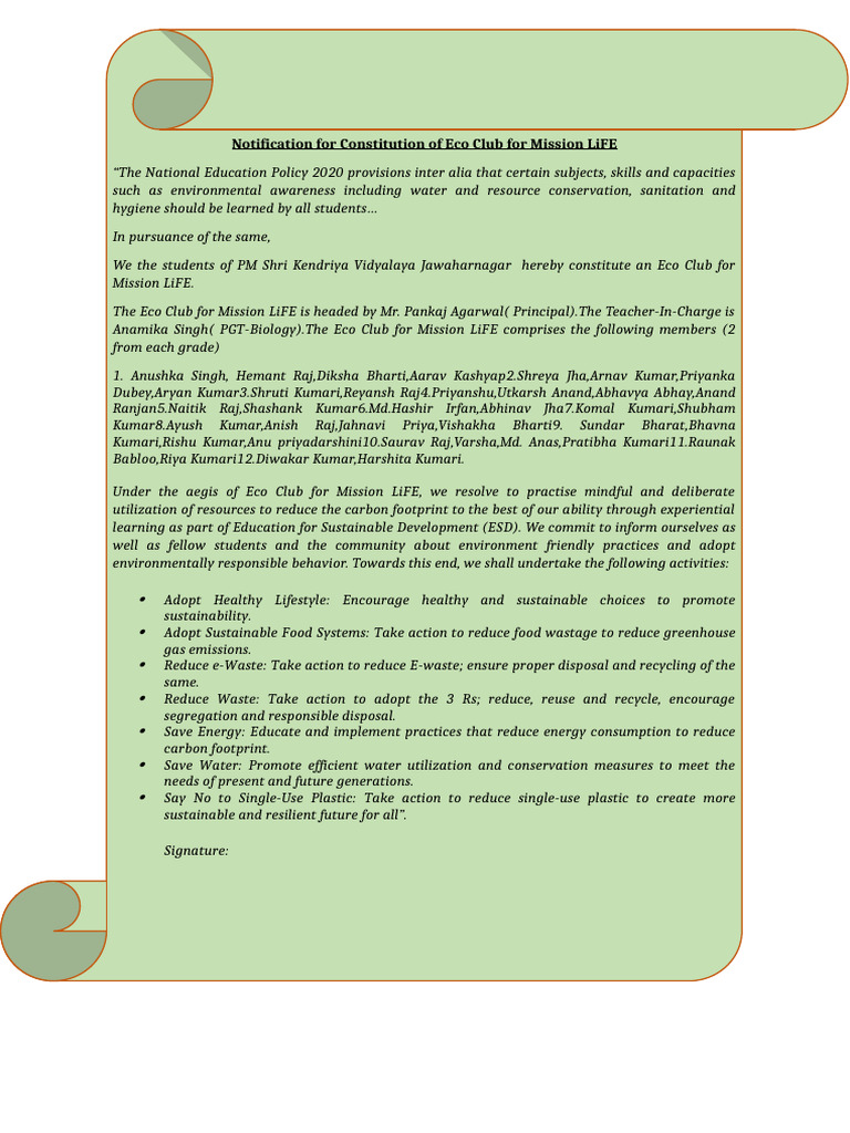 We the students of PM Shri Kendriya Vidyalaya Jawaharnagar hereby constitute an Eco Club for