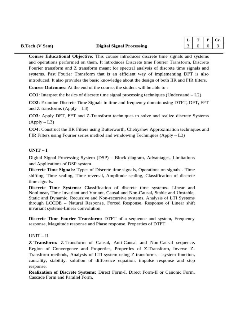 B.Tech.(V Sem) Digital Signal Processing 3 0 0 3