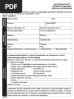 I understand that information disclosed pursuant to this authorization may include information relating to the following, unless