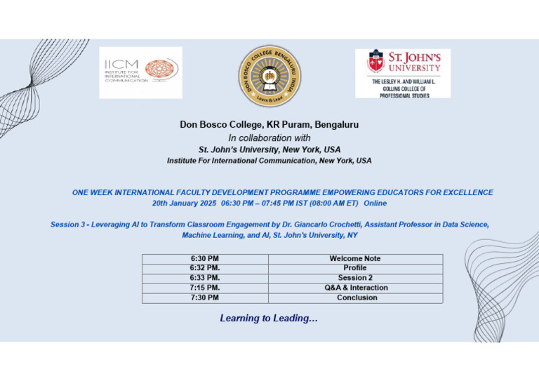 Session 3 - Leveraging AI to Transform Classroom Engagement by Dr. Giancarlo Crochetti, Assistant Professor in Data Science,