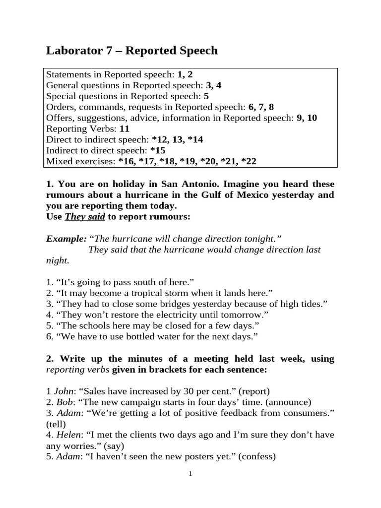 Offers, suggestions, advice, information in Reported speech: 9, 10