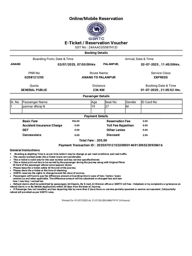 refund (Gsrtc.in or By Mobile Application) within 30 days from the date of Journey.