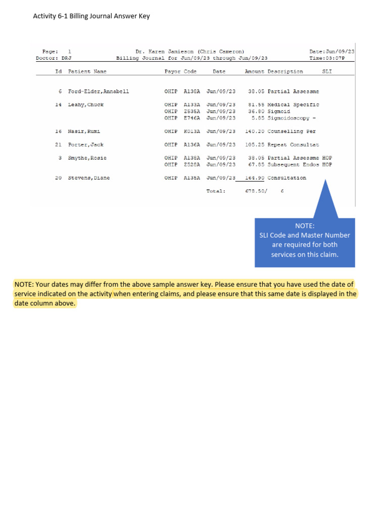service indicated on the activity when entering claims, and please ensure that this same date is displayed in the