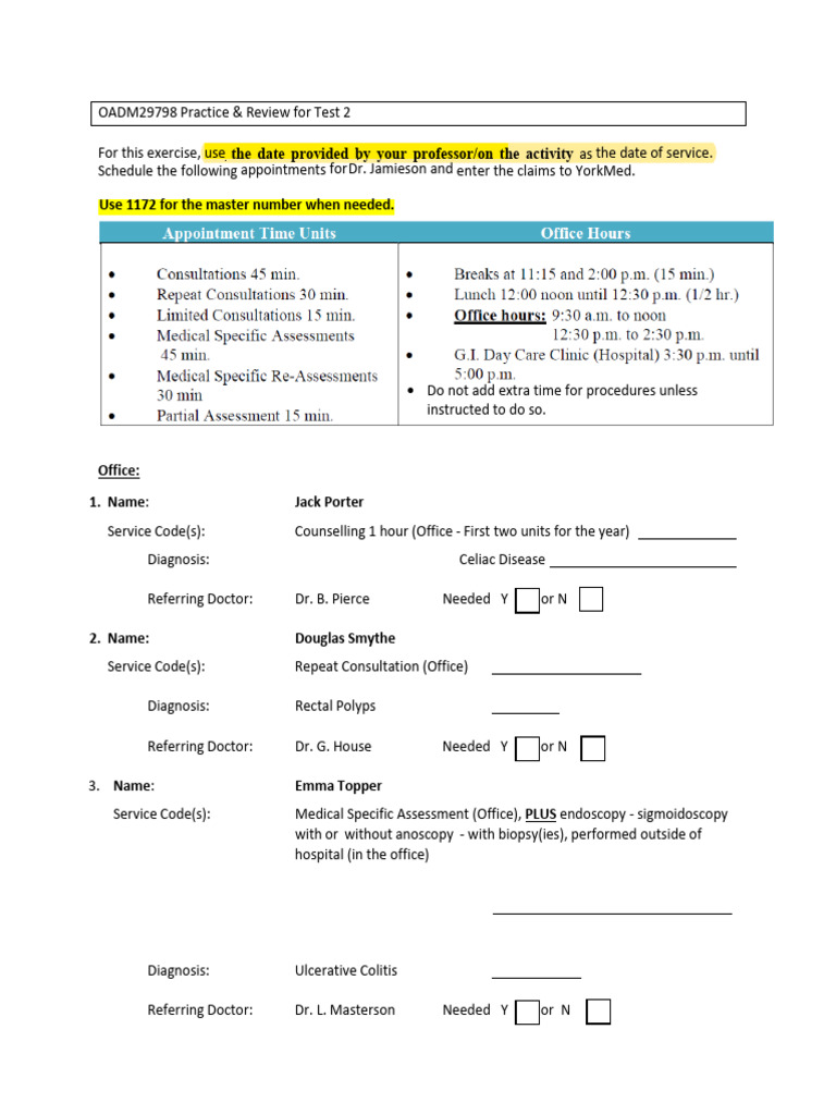 Schedule the following appointments for Dr. Jamieson and enter the claims to YorkMed.