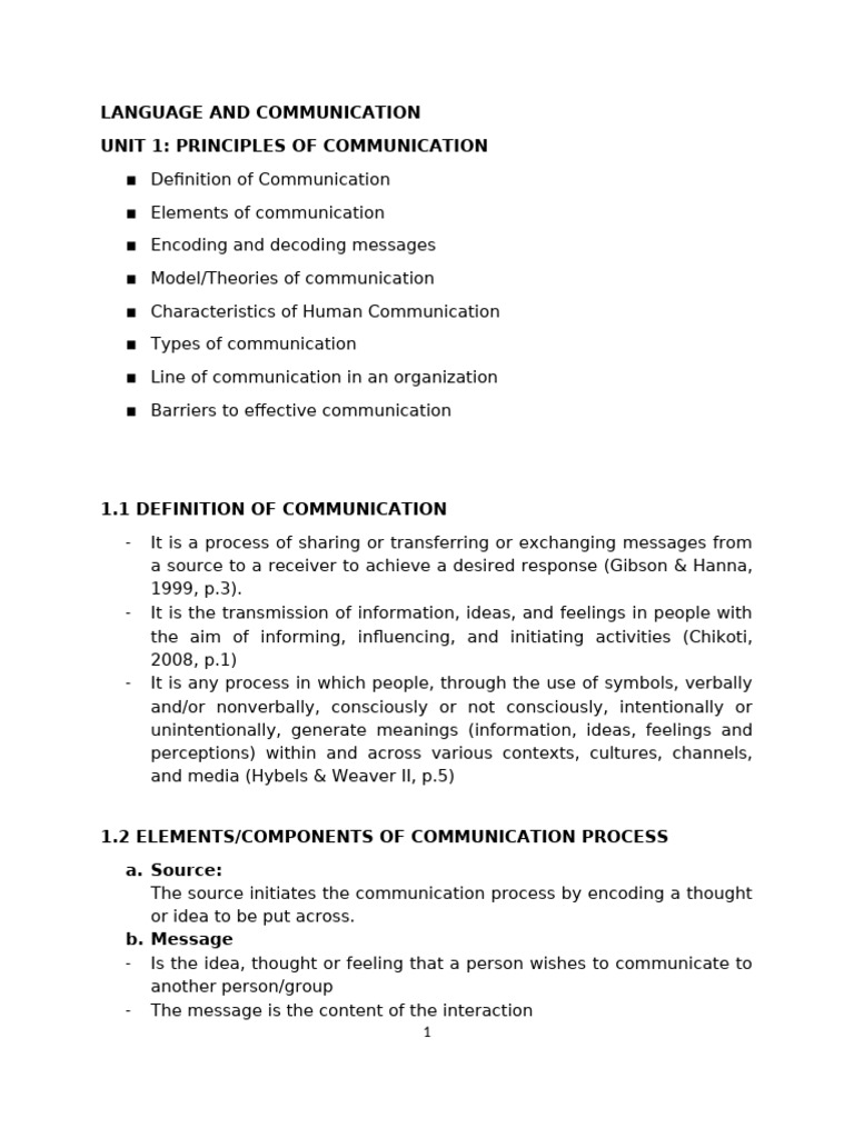 UNIT 1: PRINCIPLES OF COMMUNICATION