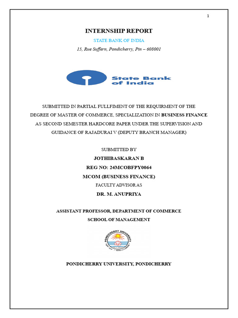 India, Main Branch, Pondicherry”, submitted to Pondicherry University, is a record of