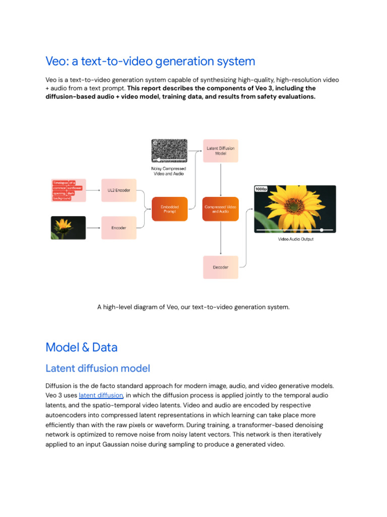 + audio from a text prompt. This report describes the components of Veo 3, including the