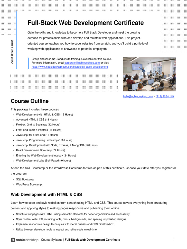 Course Syllabus | Full-Stack Web Development Certificate 1