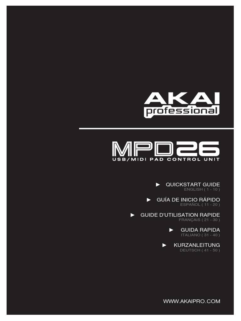 MPD26 externally, please plug in an optional Akai MP6-1 (6V-1A DC) power adapter.