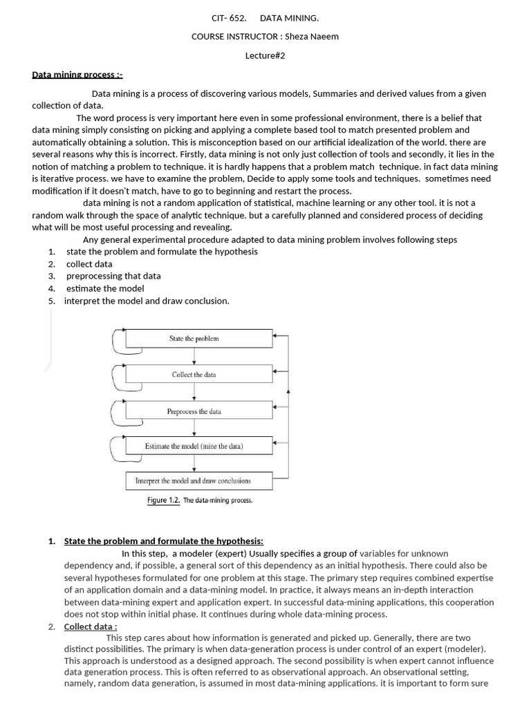 model, result to check for its usefulness is formed. Final reports are made and review of the whole process