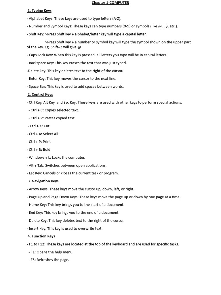 - Arrow Keys: These keys move the cursor up, down, left, or right.