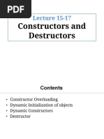The document provides an overview of constructors and destructors in C++, explaining their purpose, types, and characteristics. It details default, parameterized, and copy constructors, along with the syntax for defining them, and discusses the role of destructors in memory management. Additionally, it touches on operator overloading, including unary and binary operators, with examples illustrating their implementation.
