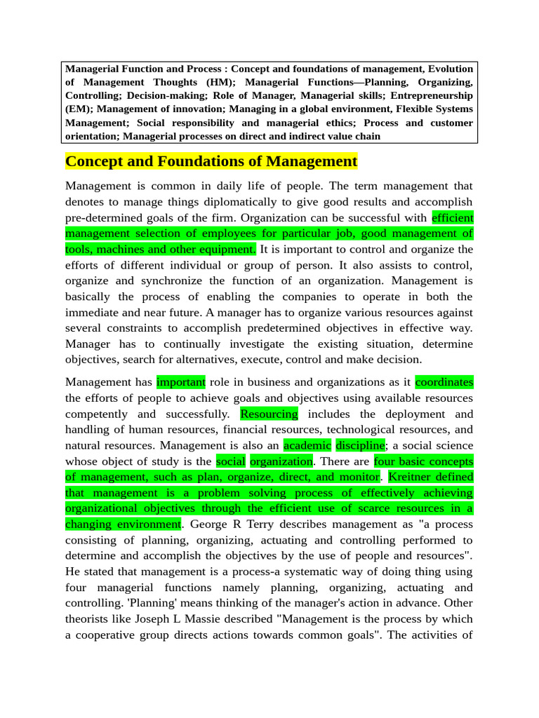 Managerial Function and Process : Concept and foundations of management, Evolution