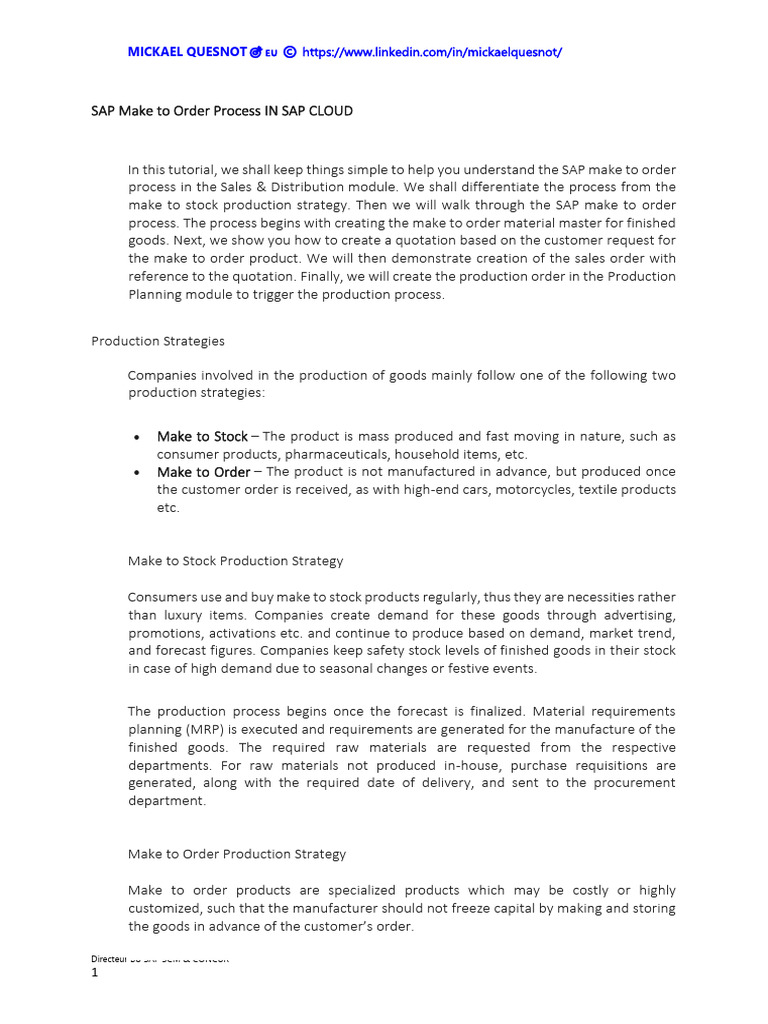 In this tutorial, we shall keep things simple to help you understand the SAP make to order